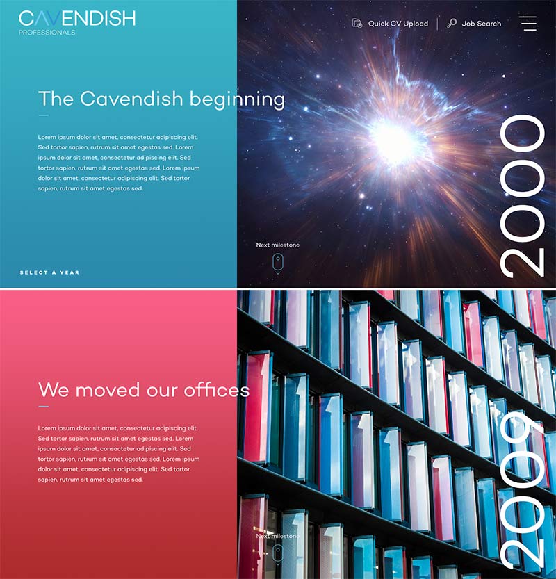 Throughout Cavendish’s new website, we wanted to push the boundaries of what had been done before. Instead of conforming to the norm, we wanted to challenge the way that users interacted and experienced the new website.