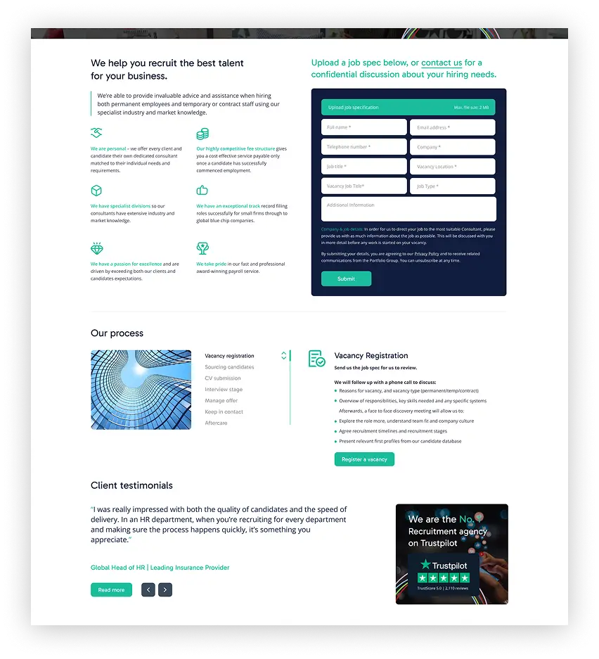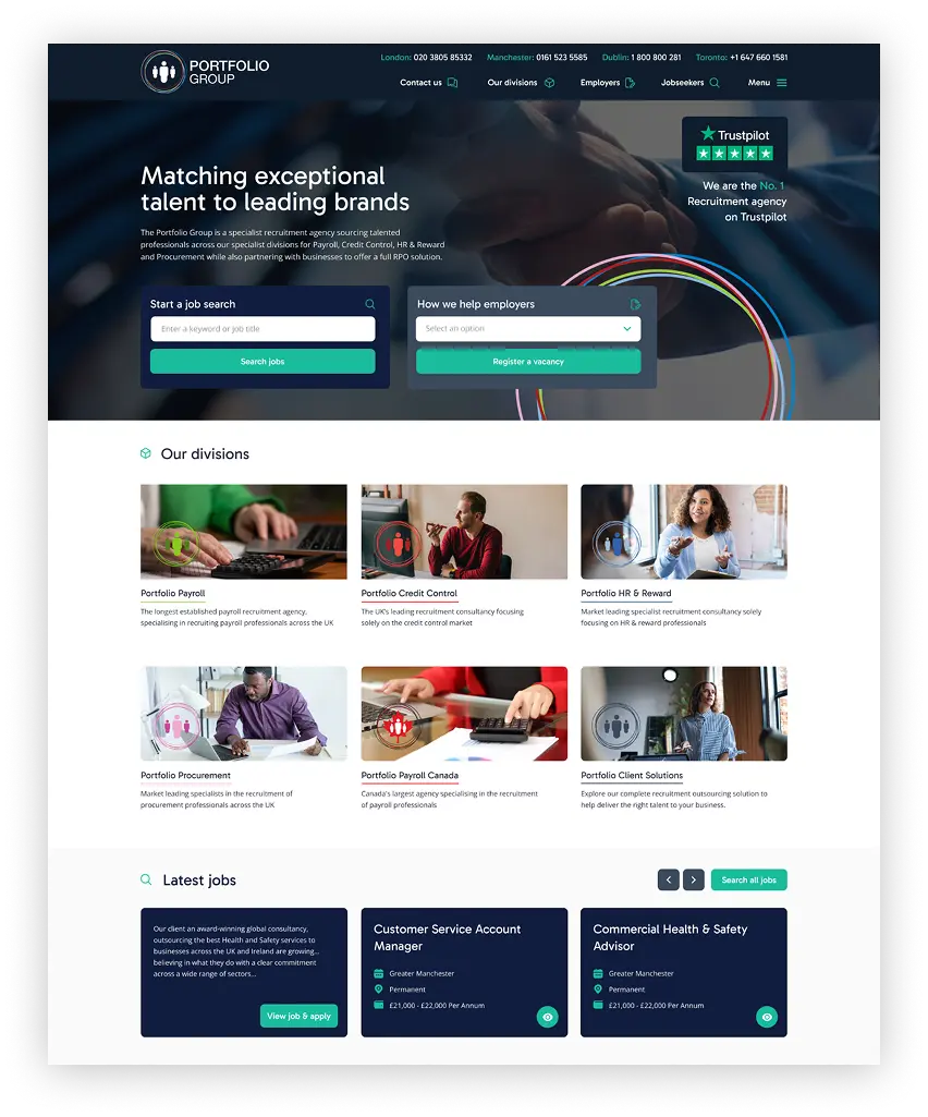 We consolidated the individual sites into one structured website and supported the project with logo refinement and wider brand guidance. The result is a cleaner, more confident digital presence that is easier to manage and better reflects the scale, professionalism and future ambitions of The Portfolio Group.